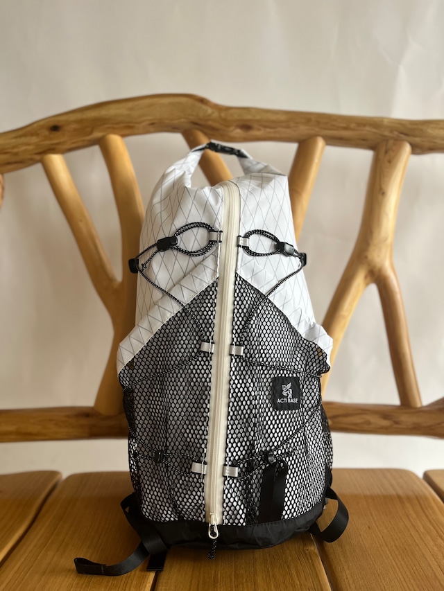 【I.D.backpack mini即売品をご用意しました】 X-pac White/ファスナーWhite ※こちらの商品はカラーカスタムができません。 I.D.backpack miniはカラーカスタムができるバックパックでご注文頂いてからの製作となる為、お届けまでに3ヶ月ほど頂いておりました。 そこで今回は、お待ちいただく事なく、即発送できるI.D.backpack miniをご用意致しました。 【ポイント】 ●大人気のI.D.backpackを形はそのままに、容量を約半分にしたモデルです。 日帰り登山やハイキング、またアタックザックとして活躍するサイズ感です。 X-pacを使用したロールトップ型バックパックです。容量に合わせてバックパックの大きさを調整できるロールトップ式を採用いたしました。また素材にX-pacという防水で丈夫な生地を使用しております。 ●フロントファスナー 中央のファスナーで上からも下からも内部にアクセスできるため下に入れ込んでしまった荷物に手が届きやすく、突然の雨でレインウェアを取り出す際にとても便利です。 ●大口のメッシュポケット 外側のメッシュポケットは濡れたテントやレインウェア等を入れられるように大きめに作っております。荷物が少ない時にはドローコードで口を縮めてドリンク等を入れておけます。 ●張り巡らされたリフレクターゴム リフレクターゴムが前面に張り巡らされているので夜間の視認性を向上させております。コードを締めることでコンプレッションにも使えます。 容量:約16L 重量:約365g 【注意事項】 ・カスタムオーダー品になりますのでご注文後のキャンセル、返品、交換は受け付けておりません。 ・お届けした商品に破損や不備、商品の不足があった場合、商品到着後3日以内にご連絡ください。事実確認の上で、早急に対応をさせていただきます。 【補足】 防水性能はありません。防水性の生地やファスナーを使用していますが、縫い目から水が入ってきます。雨天時はザックカバーや防水のパックライナー等のご使用を推奨いたします。