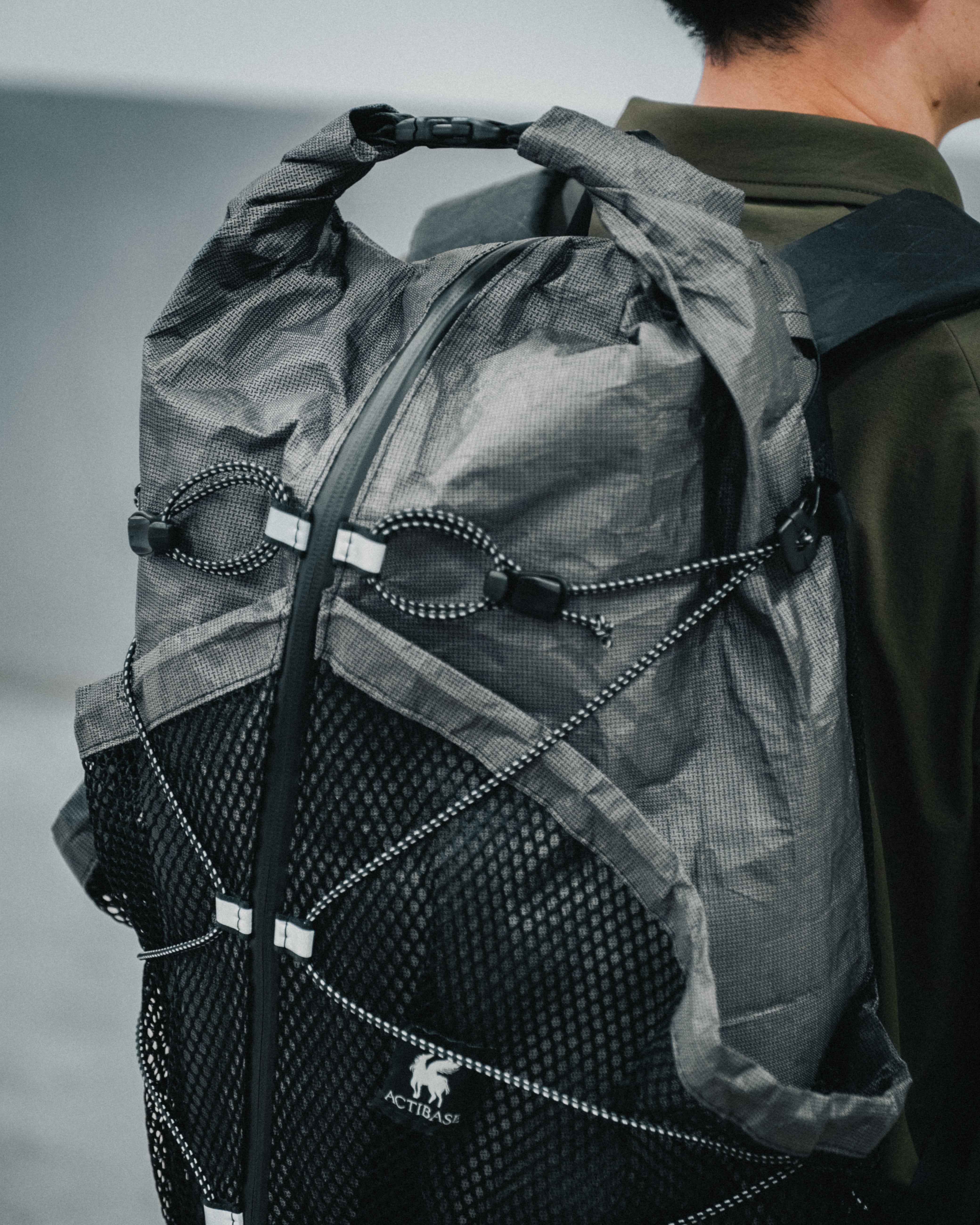 ULTRA生地を使用したロールトップ型バックパックです。容量に合わせてバックパックの大きさを調整できるロールトップ式を採用いたしました。素材にはuitra200と言う防水で丈夫な生地を使っております。